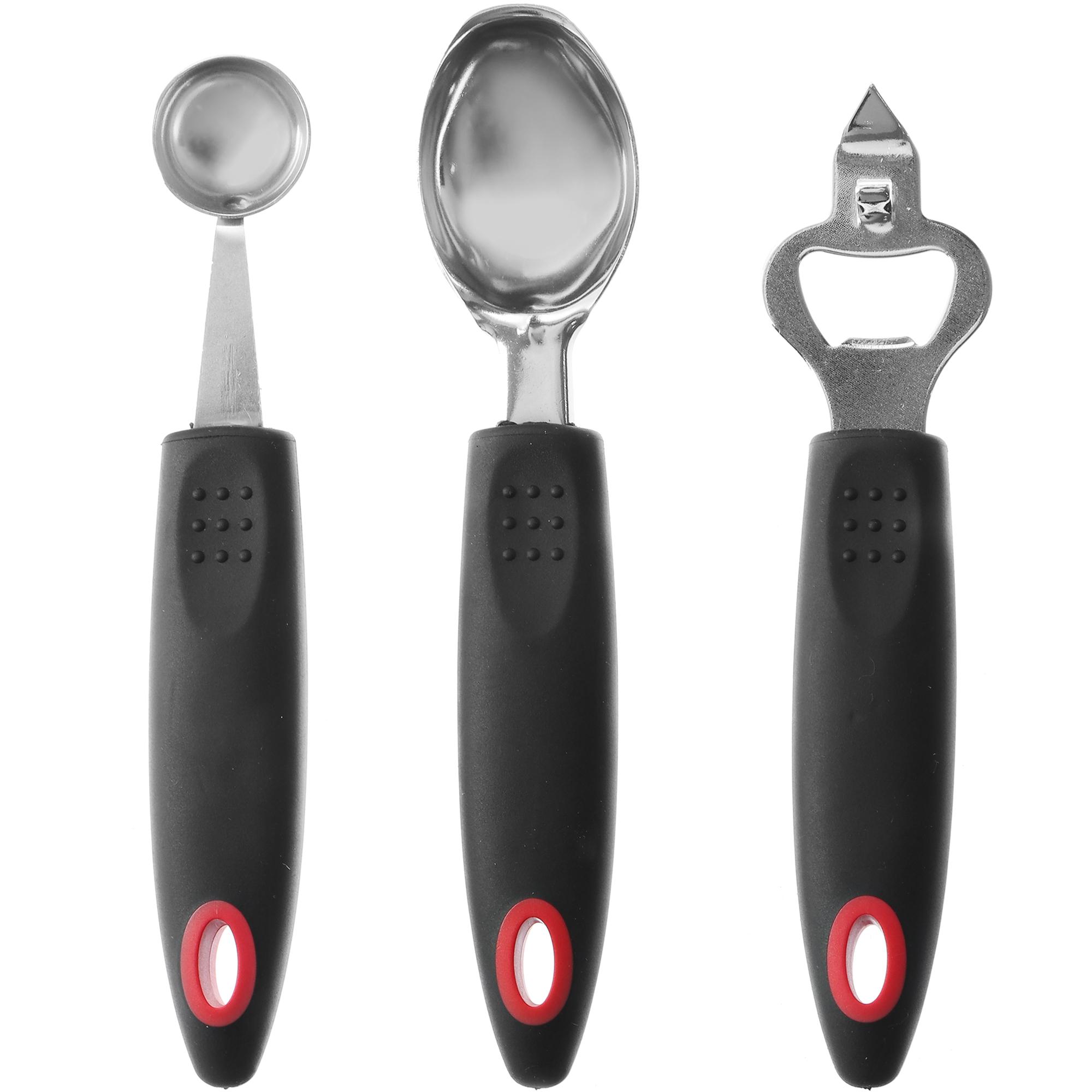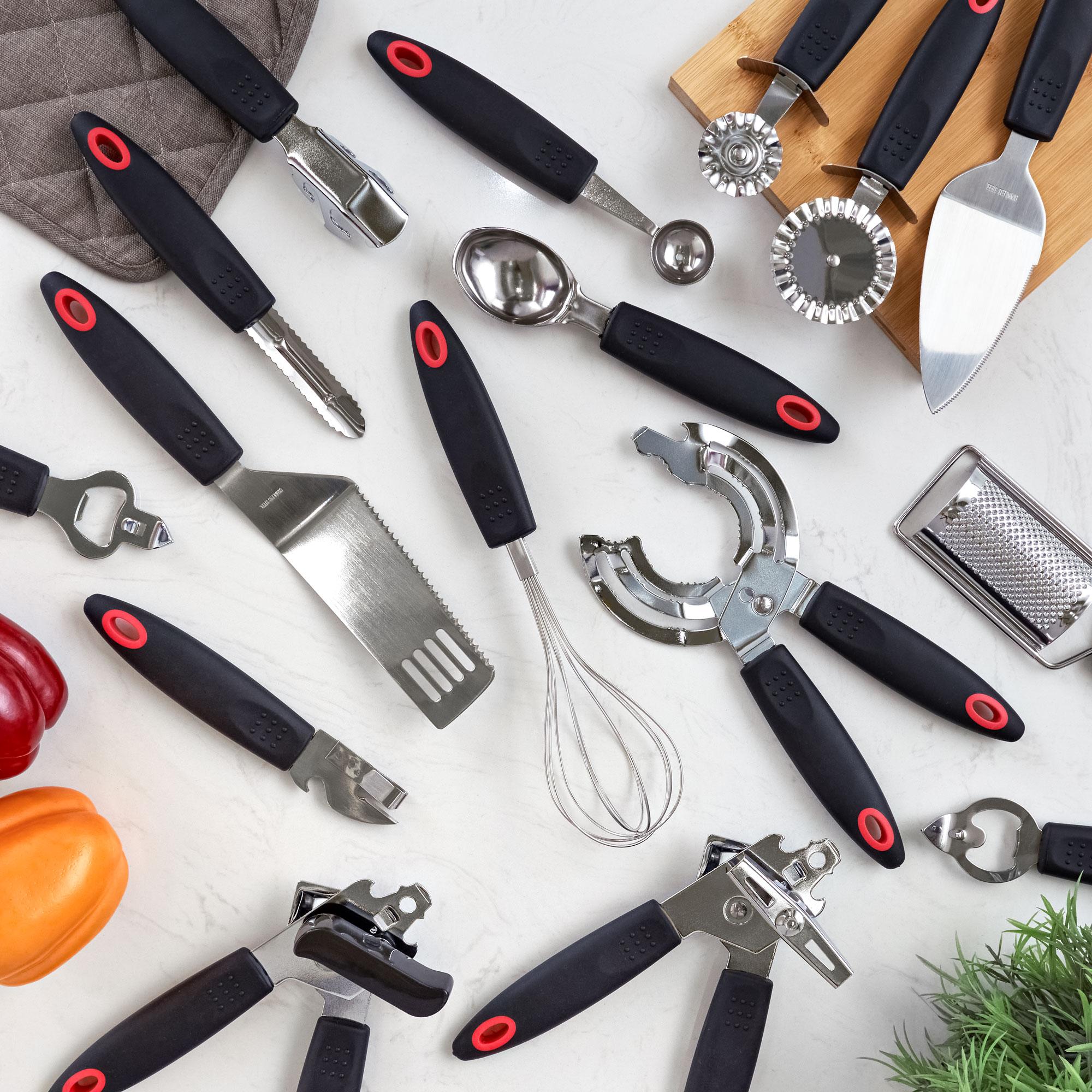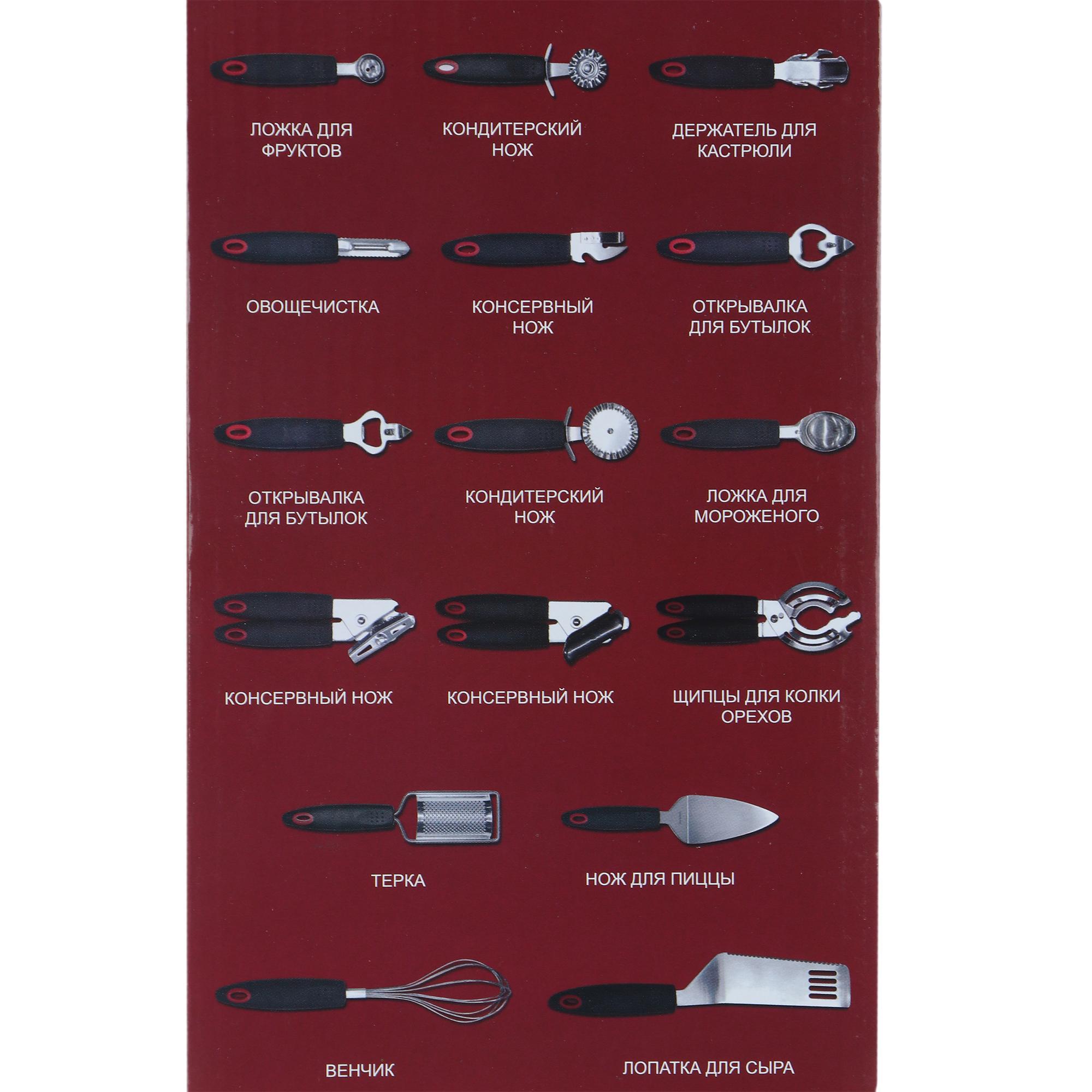 Идеальные кухонные принадлежности, чтобы сделать процесс приготовления и сервировки пищи легким, быстрым и удобным! В силиконовый набор кухонных принадлежностей включена вся необходимая кухонная утварь: ложка для фруктов, кондитерский нож, держатель для кастрюли, овощечистка, консервный нож, открывалка для бутылок - 2 шт, кондитерский нож, ложка для мороженого, консервный нож - 2 шт, щипцы для колки орехов, терка, нож для пиццы, венчик, лопатка для сыра. Кухонные принадлежности сделаны из премиального и безопасного силикона, который не повреждает сковородки и не передает еде запах и цвет, также силиконовые кухонные принадлежности обладают термостойкостью. Набор из 16 предметов станет незаменимым помощником на вашей кухне: используйте кухонные принадлежности для выпечки, жарки, варки, сервировки, приготовления салатов и много другого!