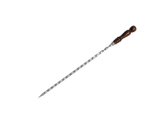 Шампур из нержавеющей стали Aisi 430 и деревянной ручкой с колечком на конце, ручка покрашена морилкой и покрыта несколькими слоями качественного, огнестойкого лака.Рабочая длина шампура: 600 мм.