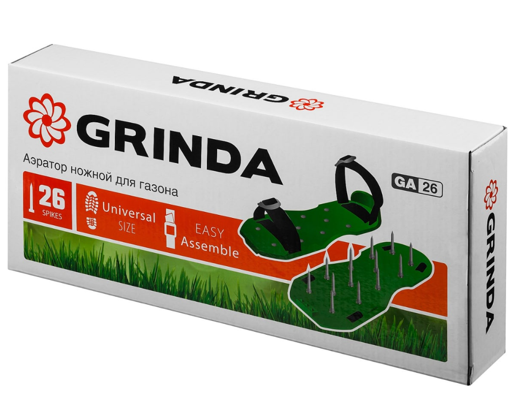 Ножной аэратор для газона со стальными шипами Grinda GA-26 26 шипов длиной 50мм 422111 обеспечивает доступ кислорода к растениям без повреждения корневой системы.