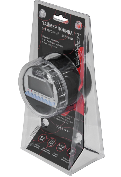 Таймер электронный программируемый на один канал предназначен для автоматического управления подачей воды в системах капельного полива на садовых и дачных территориях. Таймер капельного полива подсоединяется между поливным шлангом и водопроводным краном, после чего он сам в соответствии с заданными настройками будет подключать и отключать поток воды. Благодаря автоматическим системам полива и таймерам подачи воды процесс полива будет всегда под контролем, где бы Вы ни находились. В комплект входит инструкция на русском языке. Рекомендуется использовать совместно с фильтром очистки воды.