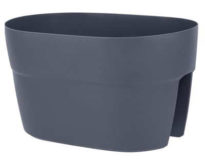 Балконный ящик, предназначенный для использования на балконных перилах, овальный, двусторонний, с системой фиксации.