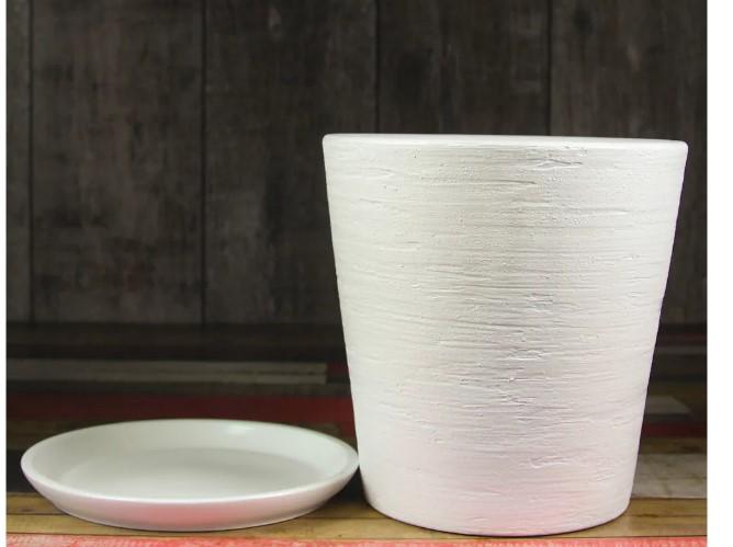 Горшок изготовлен из керамики высшего качества, что гарантирует долгий срок службы и сохранение первоначального вида. Белоснежная отделка добавляет элегантности, а устойчивость материала обеспечивает надежную поддержку для ваших растений.