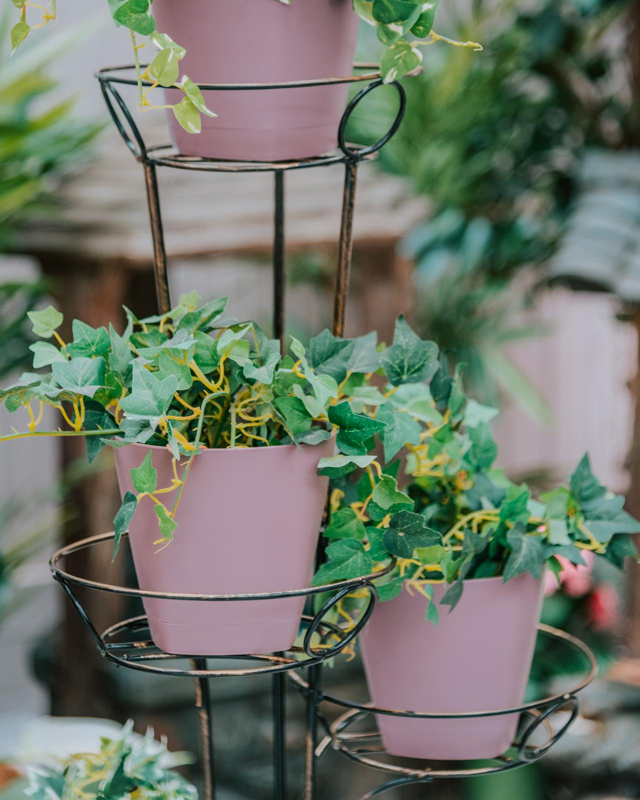 Кованые завитушки и изысканный стиль делают эту стойку неотъемлемой частью вашего сада или балкона. Стойка позволяет разместить до пяти различных растений или цветов, создавая удивительное сочетание цветов и форм.