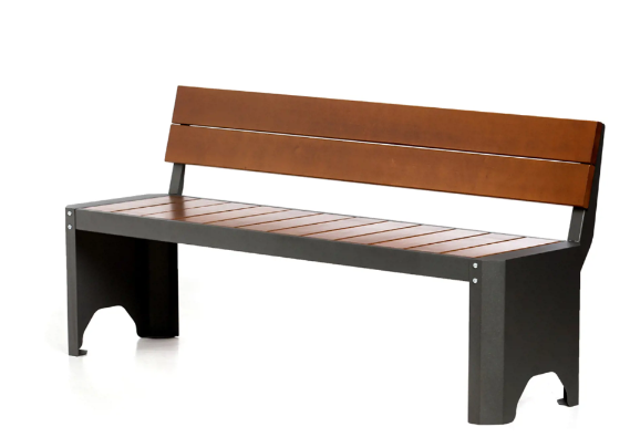 Стильная и удобная скамейка для парковых или садовых пространств. Выполнена из стали и дерева.