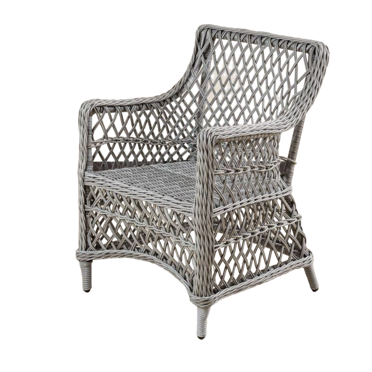 Подойдет для обеденной зоны, в помещении и на улице Благодаря алюминиевому каркасу кресло, несмотря на легкость, очень прочное. Кресло изготовлено вручную в полукруглом жгуте , идеально сочетается как с плетёным столами, так и со столами из керамогранита или HPL.