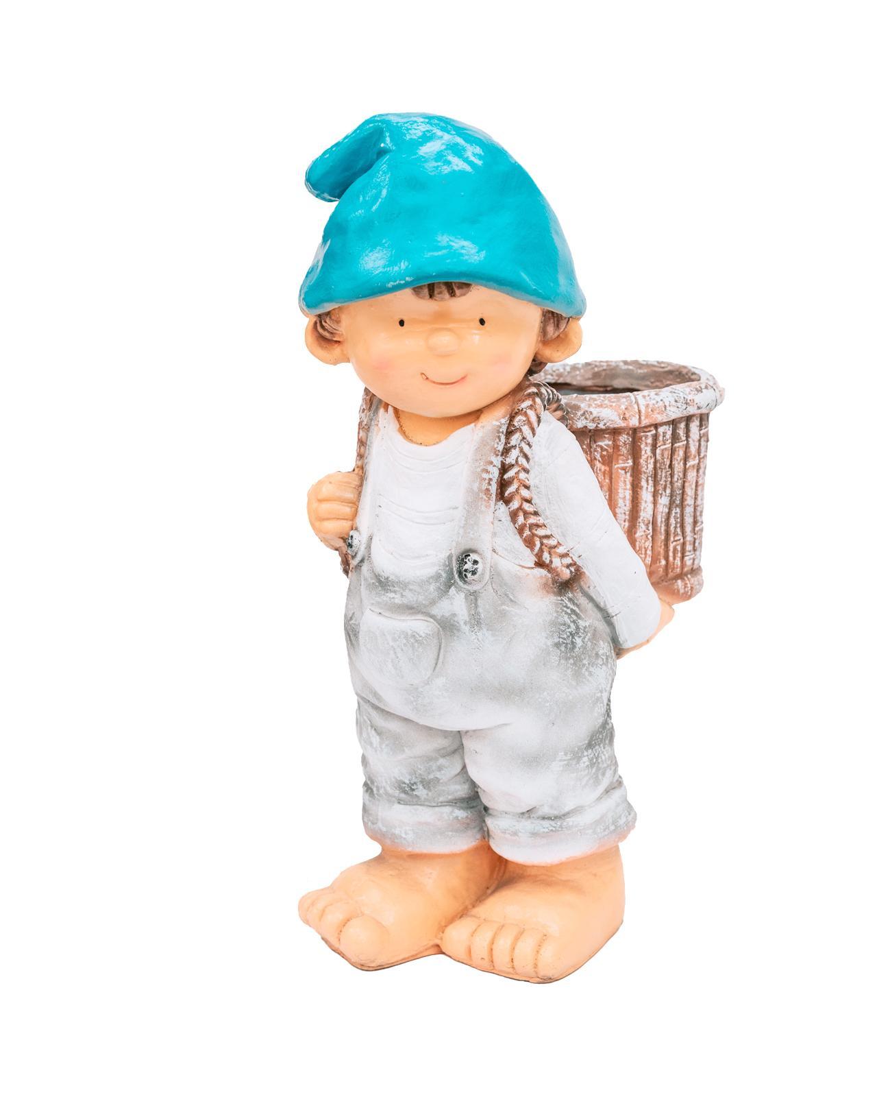 Садовая фигура «Мальчик кашпо» - это интересное, декоративное решение, выполняющее сразу несколько функций: практическую, эстетическую, развлекательную. Такая статуэтка отлично впишется в Ваш интерьер в качестве декоративного элемента. Садовая фигура из полистоуна легко переносит любые атмосферные воздействия в виде дождя, града, снега, температуру широкого диапазона: от - 50 до + 180 градусов, не реагирует на высокую или низкую влажность, устойчива к солнечному излучению. С помощью фигуры для сада даже самую стандартную дачу можно преобразить в сказочный уголок.