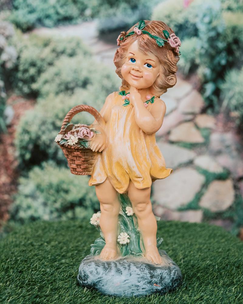 Садовая фигура «Девочка на камне с корзиной цветов» подойдет для украшения Вашего садового участка. Дачные фигурки из полистоуна имеют высокую устойчивость к негативным внешним факторам в виде плохой погоды, сырости, жары, ультрафиолетовым излучениям. Фигура декоративная долговечна и будет радовать своих владельцев долгие годы. Фигура для сада проста в уходе, для очистки достаточно протереть его влажной тканью, по необходимости с использованием любых моющих средств. Сувенир сделает дворик особенно красивым и уютным.