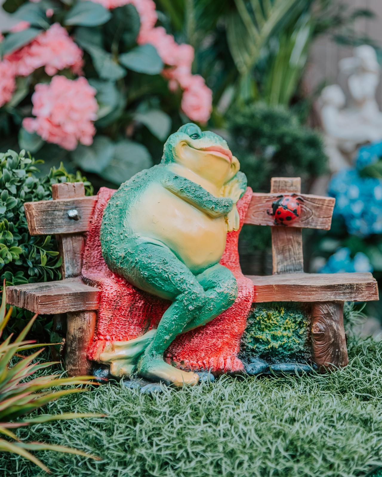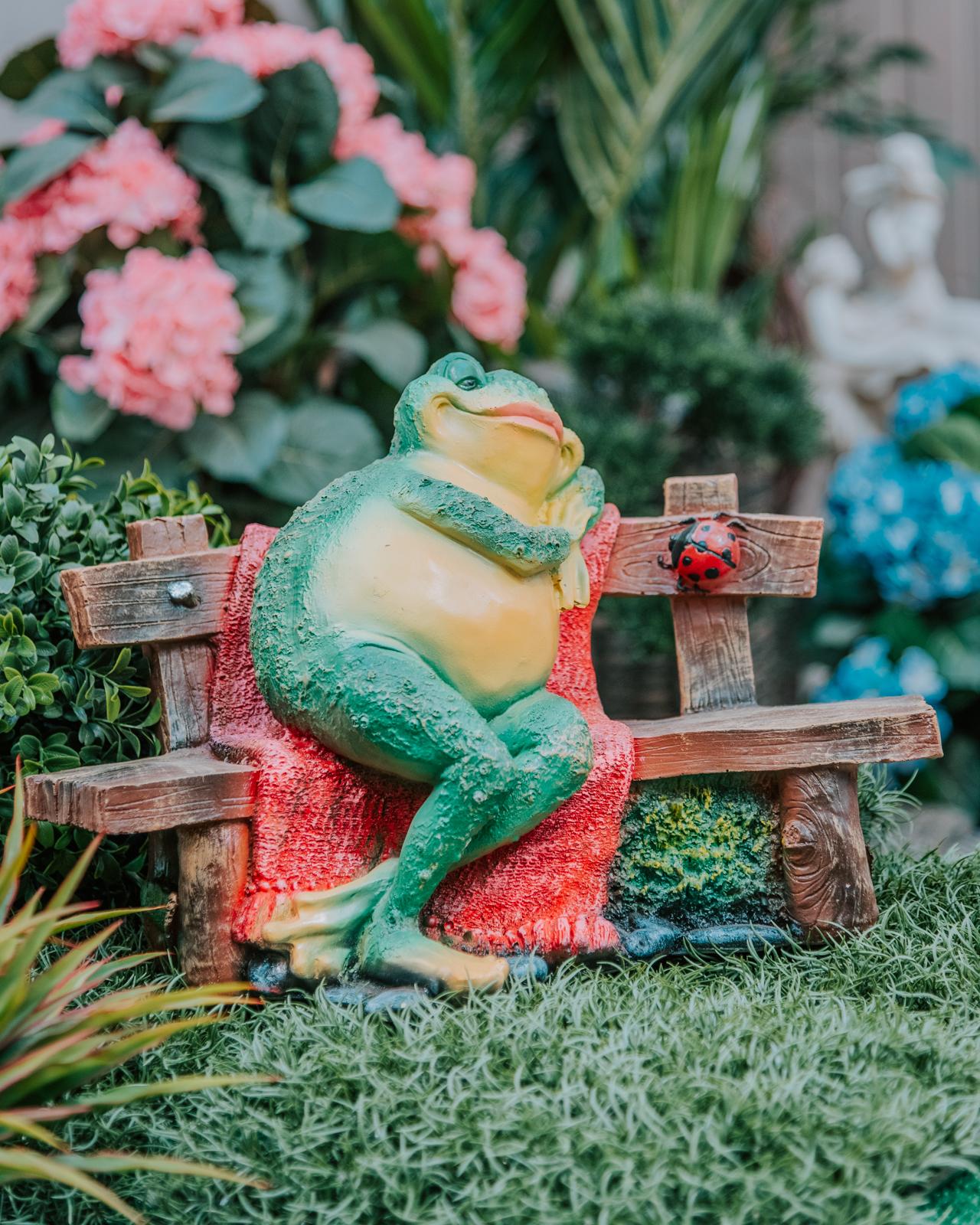 Фигура садовая «Лягушка на лавочке сидит» — милое и забавное украшение для частного дома или дачи. Фигура декоративная используется при оформлении территории загородного дома, подбирается под его архитектурный стиль или стиль садового участка. Фигурку можно установить рядом с клумбами, искусственными прудами, водопадами и дорожками из камня. Дачная фигурка изготовлена из полистоуна, имеет высокую устойчивость к негативным внешним факторам в виде плохой погоды, сырости, жары, ультрафиолетовым излучениям. Сувенир сделает дворик особенно красивым и уютным.