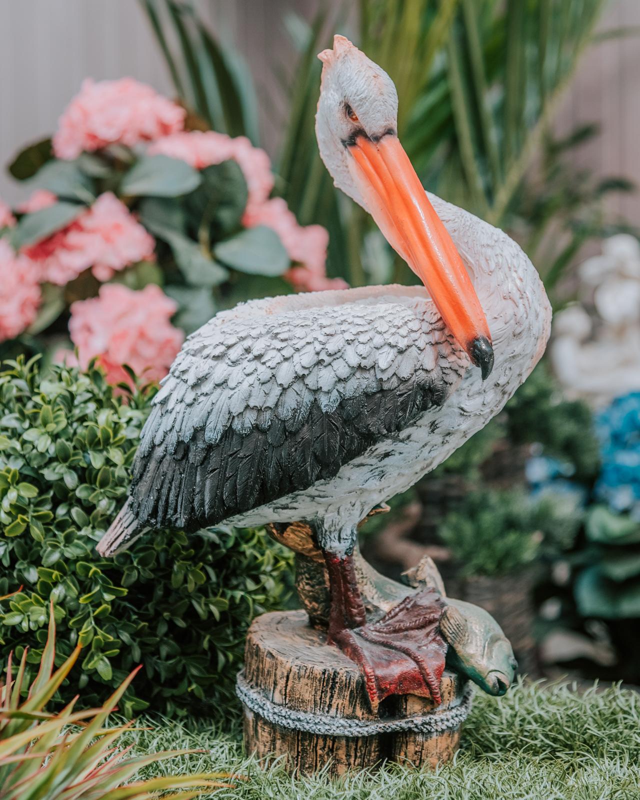 Фигурка садовая «Пеликан с рыбой» украсит приусадебный участок и долгие годы будет радовать вас своим присутствием. Декоративная фигура идеально подойдет для украшения вашего сада, дорожек между грядками и на берегу вашего миниатюрного водоема. Садовые фигуры простой способ привнести уникальность в свой участок. Фигура изготовлена из полистоуна, который не боится бактерий, влажности, солнечных лучей и иных погодных явлений, не трескается, не разрушается и сохраняет первоначальный внешний вид на протяжение сезонов. С помощью фигуры для сада даже самую стандартную дачу можно преобразить в сказочный уголок.