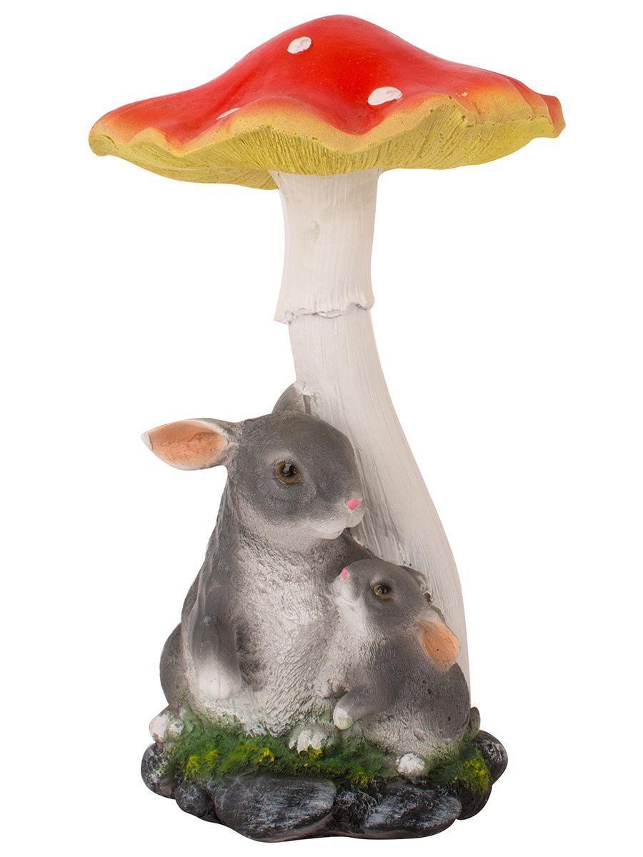 Садовая фигура Зайцы под грибом 29см. Садовая фигурка изготовлена из искусственного камня полистоуна. Изделия из полистоуна отличаются: 1. Повышенной прочностью и износостойкостью. 2. Невосприимчивостью к воздействию влаги, ультрафиолетовых лучей. 3. Тщательной проработкой деталей фигурок и изящностью форм. 4. Лёгкостью, которая позволяет перемещать предметы, чтобы обновить композицию сада. 5. Безопасностью для здоровья человека и окружающей среды.Фигура из полистоуна придаст участку живой и неповторимый вид, станет отличным подарком к празднику, удачно впишется в любой сад и подчеркнёт индивидуальность владельца загородного дома.Уход за такими изделиями очень прост, достаточно протирать их влажной тряпочкой.