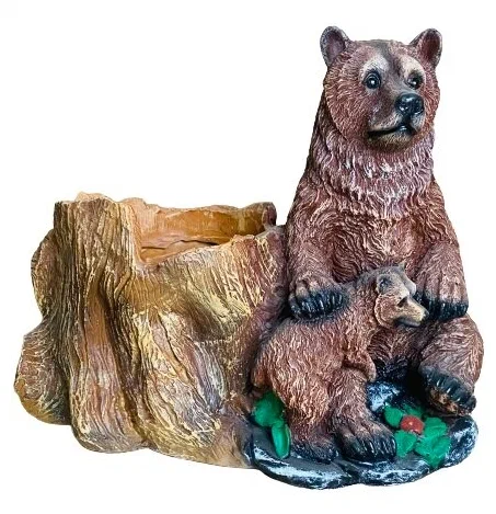 Садовая фигурка-кашпо "Медведи у пня H-30см, D-15см . Фигурка изготовлена из искусственного камня полистоуна, который сочетает в себе все качества природного материала. Изделия из полистоуна отличаются повышенной прочностью и износостойкостью, они устойчивы к воздействию влаги, ультрафиолетовых лучей и других разрушающих факторов внешней среды, а используемые при создании фигурок лакокрасочные материалы устойчивы к перепаду температур и погодным осадкам. Садовые фигурки из полистоуна станут украшением Вашего садового участка и придадут ему неповторимый вид.