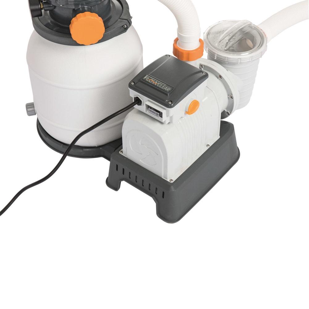 Песчаный фильтр-насос используется для рециркуляции и механической очистки воды бассейна от различных загрязнений: песка, листьев, насекомых, хлопьев и прочего мусора. Песочный фильтр это одно из самых эффективных средств для очистки воды в бассейне. Фильтровальная установка осуществляет механическую очистку воды в бассейне за счет фильтрующего элемента - кварцевого песка. Подключается к бассейну двумя шлангами, которые надёжно фиксируются хомутами. Для удобства оснащён шестью режимами работы с обратной промывкой и манометром для индикации давления в системе. Преимущества -песчаный фильтр-насос очищает воду значительно лучше, чем аналогичный картриджный. Производительность насоса: 7751 л/ч. Резервуар для кварцевого песка: 20 кг. Песок в комплект не входит!