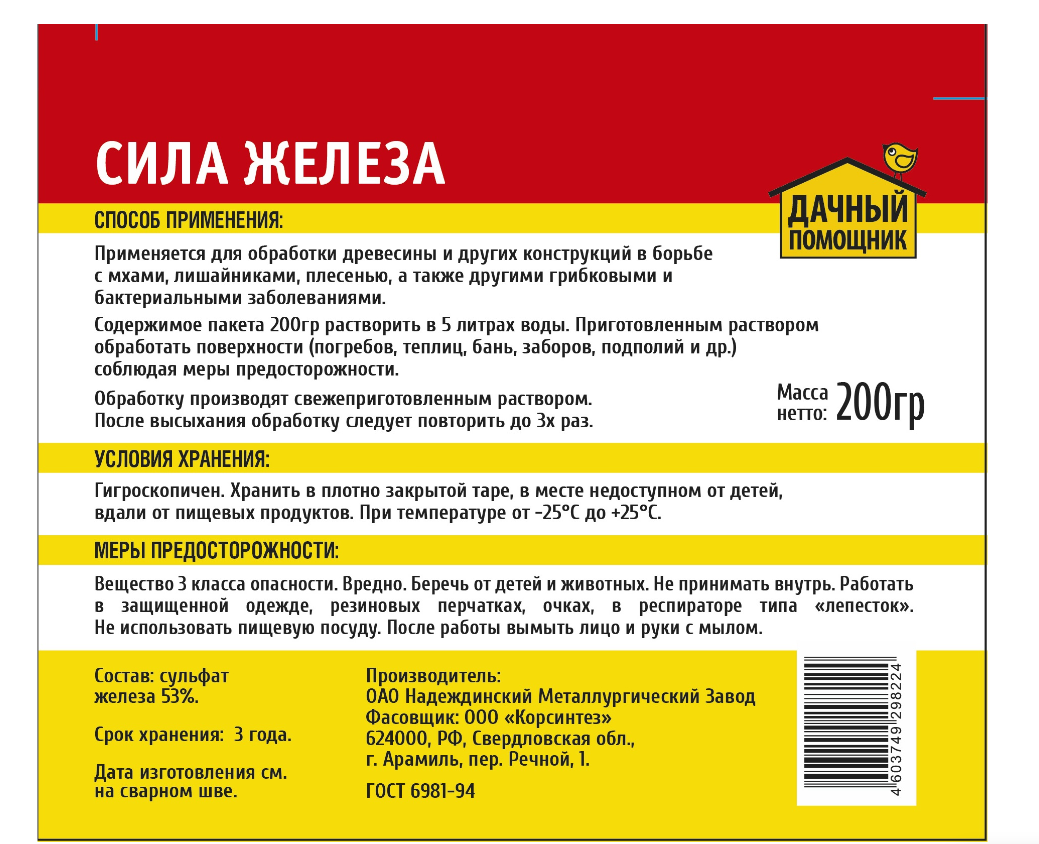 Минеральный фунгицид «Железный купорос» - эффективное средство борьбы с грибковыми заболеваниями растений и богатый источник железа. Используется также для обработки помещений от грибков и плесени.