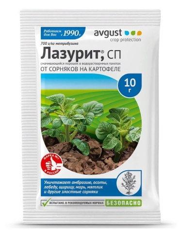 Дачники хорошо знают, что одним из важнейших залогов высокого урожая картофеля является отсутствие сорняков. Прополка грядок весьма трудоемкий процесс, и облегчить его поможет гербицид селективного действия «Лазурит». Он уничтожает только сорную растительность и никак не вредит картофелю.