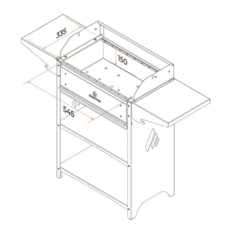 Имеет выдвижной зольник, что позволяет регулировать интенсивность жара.