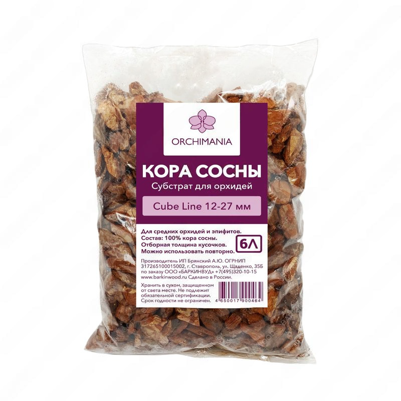 Грунт Orchimania - это универсальный грунт для растений эпифитов, который представлен 2 линейками: Classic, Cube. Грунт для орхидей премиум серии Куб отличается толщиной кусочков, что увеличивает срок удержания влаги в 4 раза и продлевает срок использования субстрата для растений до 7 лет. Толстые кусочки сосновой коры служат как питательный субстрат для орхидей (фаленопсисов), для укрепления корней, а также используются как дренаж для орхидеи и комнатных цветов. Сосновая кора для орхидеи используется для пересадки этих растений. Фракция 7-19 мм подходит для молодых орхидей. Фракция 12-27 - для средних орхидей. Фракция 23-44 предназначена для крупных орхидей. Кора сосны очищена от примесей и является экологически чистым продуктом. Грунт из коры используется как мульча для комнатных цветов.