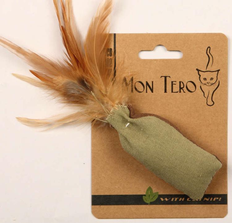 Mon Tero Eco для кошек «Мешочек с перьями» с кошачьей мятой Забавная игрушка Mon Tero Eco принесет вашей кошке море удовольствия и радости. Наполненный кошачьей мятой шарик источает аромат, перед которым не может устоять ни один кот. При движении он приятно шуршит и способен привлечь внимание даже самого ленивого питомца. Игрушка, изготовленная из материалов природного происхождения, абсолютно безопасна как для взрослых кошек, так и для котят. Кошачья мята оказывает благотворное влияние на нервную систему четвероногих, успокаивая гиперактивных кошек и пробуждая природные инстинкты у спокойных и пассивных. Вовлекая своего питомца в игровой процесс, вы не только зарядитесь хорошим настроением, но и защитите диваны и кресла от острых коготков и зубов. Игра развивает ловкость и реакцию, способствует укреплению мускулатуры и оттачивает охотничьи навыки. Ваша кошка будет в восторге от такого подарка!