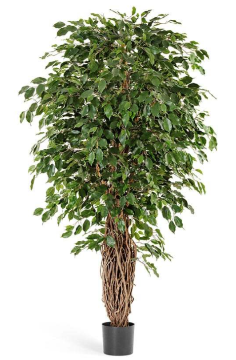 Фикус Бенджамина Де Люкс. Объемная, напоминающее овал, крона с тонким стволом. Цвет - натуральный зеленый. Представляет точную копию живого растения, но не требует особого ухода. Изготовлен в Бельгии. 1705 листов. Перевозится в транспортировочном кашпо указанное на фото.