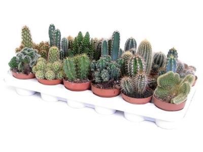 Кактус микс — представители семейства кактусовых в ассортименте. Не требуют сложного ухода — их мясистые стебли с плотной кожицей адаптируются к дефициту влаги и к большим перепадам температур. Дополнительную декоративность кактусам придают разнообразные колючки и цветы, оттенок и форма которых зависят от сорта. Высота растения — 38 см. Диаметр горшка — 17 см.