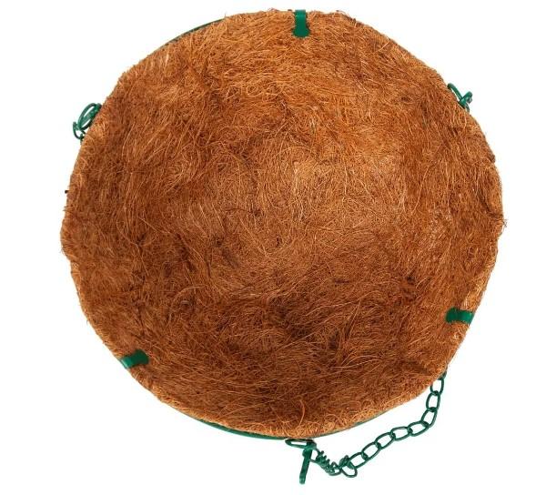 Кашпо подвесное с коковитой (вкладышем из кокосового волокна) идеально подходит для выращивания ампельных цветущих растений внутри помещения, во дворе, в саду. Такое кашпо смотрится очень экзотично и интересно. Пористая структура коковиты позволяет обеспечить комфортный для корневой системы воздухообмен и вывести излишек влаги. Вкладыш не выгорает, не усаживается и не трескается на солнце в течение всего сезона цветения. Каркас кашпо выполнен из прочного, устойчивого к внешним воздействиям пластика. Высота изделия 17 см, диаметр — 25,5 см.