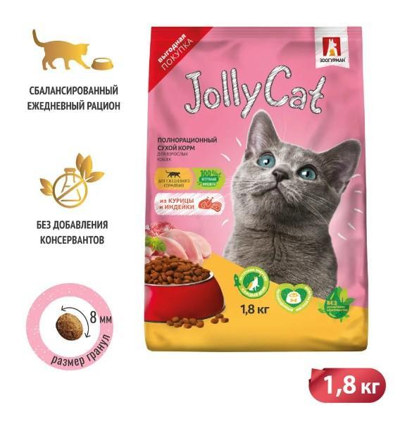 Полнорационный сухой корм ЗООГУРМАН Jolly Cat из курицы и индейки это сбалансированный корм для котов и кошек всех пород и возрастов с преобладанием мясных ингредиентов. Главный ингредиент сухого корма Jolly Cat - 32% мясо-костной основы индейки и курицы.