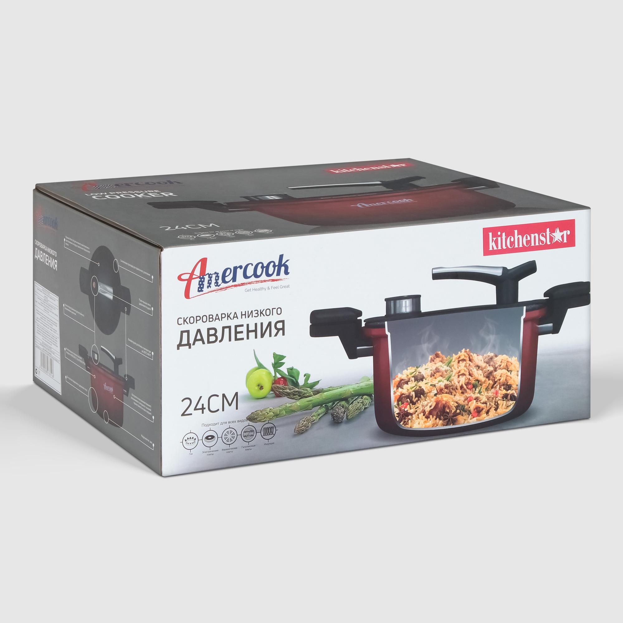 Скороварка низкого давления бренда Kitchenstar Amercook изготовлена в минималистичном стиле из прессованного алюминия с антипригарным лаковым покрытием высочайшего качества. За счет быстрой термической обработки продукты сохраняют гораздо больше пользы и витаминов.