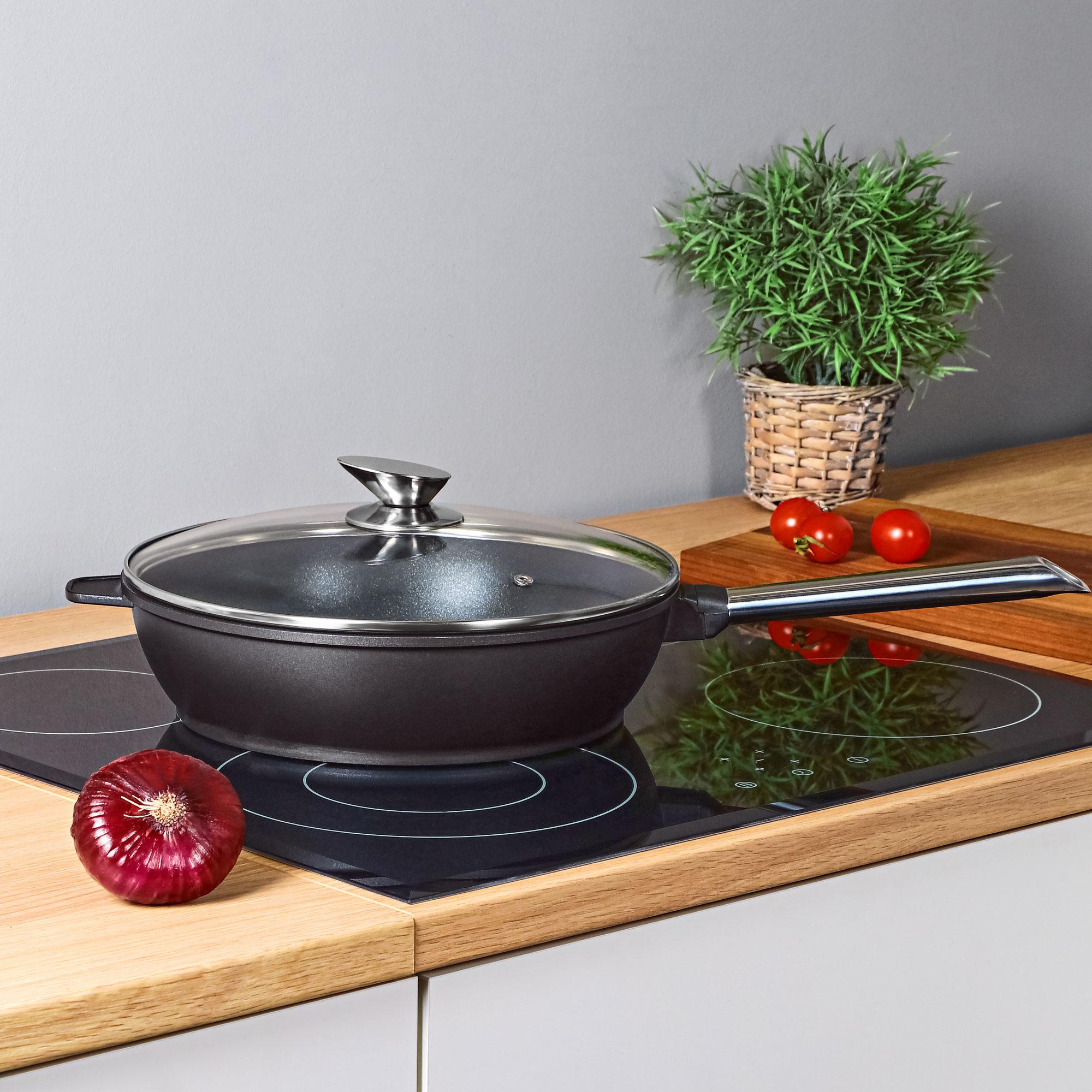 Сокровище твоей кухни, сковорода бренда Kitchenstar из коллекции Diamante, изготовлена в минималистичном стиле из литого алюминия с антипригарным алмазным покрытием высочайшего качества. Каменное покрытие внутри и лаковое снаружи, с алмазным эффектом, устойчиво к царапинам и обладает исключительной долговечностью, антипригарными свойствами и легко чистится. Сковородка подходит для использования на газовых, электрических, индукционных, керамических плитах. Устройте на кухне настоящую феерию вкуса с посудой высшего качества!