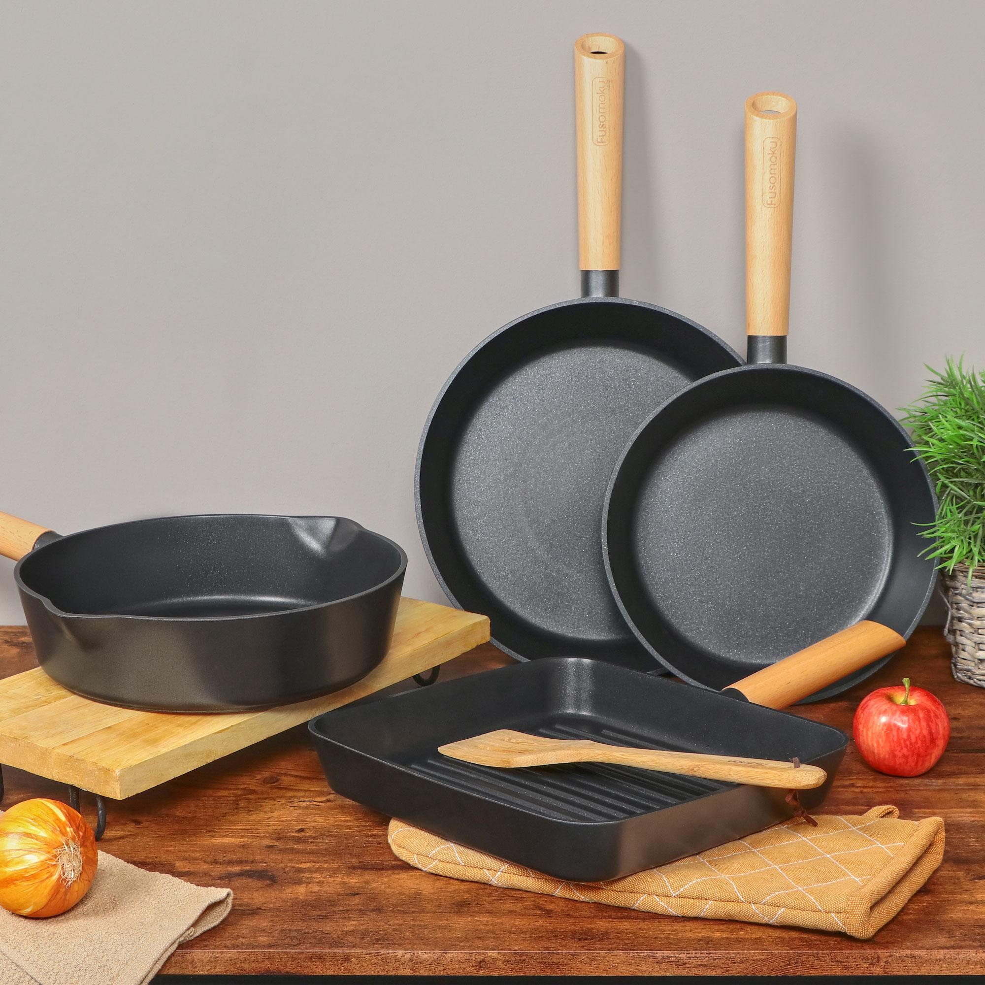 Посуда бренда Kitchen star из коллекции Fusomoku имеет стильный минималистичный дизайн и изготовлена из литого алюминия с антипригарным покрытием высочайшего качества внутри и цветным лаковым снаружи. Все материалы, использованные для создания посуды, экологичны и не содержат вредных веществ.