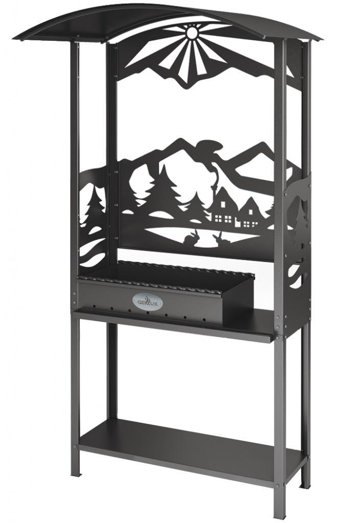 Готовить шашлык, стейки, колбаски удобно, если в арсенале есть мангал с крышей Hot Grill. Модель тщательно продумана, рассчитана на интенсивное использование и декорирована прорубным панно с изображением живописного пейзажа. Устойчивая конструкция выполнена из стали толщиной 3 мм. Поверхность защищена от коррозии термокраской. Сводчатая крыша защищает от дождя и жаровню, и кулинара. На нижней полке удобно размещать дрова. Рядом с мангалом есть небольшой стол для инструментов и посуды. Элементы соединяются стальными анодированными винтами. На бортах жаровни есть прорези для пропорционального размещения шампуров и вентиляционные отверстия для тяги.