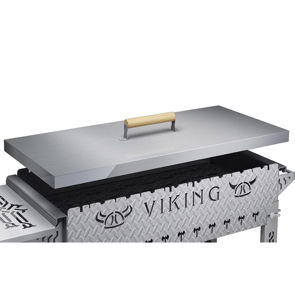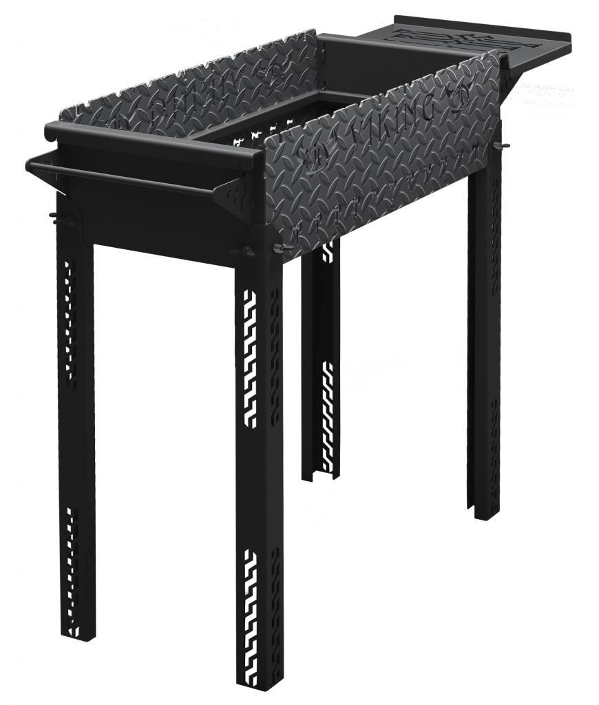 VikinG Black XL — это классический мангал из металла толщиной 4 мм, который предназначен для приготовления деликатесов на дровах или углях. Сборная модель компактна, надежна, мобильна и брутальна. Фактурный рельеф и прорезной логотип подчеркивают эксклюзивность универсальной жаровни. Сталь покрыта термоустойчивой краской, которая защищает конструкцию от коррозии. Ножки с витым узором прикручиваются винтами. Для сборки не нужны дополнительные инструменты. На съемном столе размещают посуду или инструменты. Кочергу и совок можно подвесить на специальную ручку. Подставку для котла и крышку для копчения приобретают отдельно.