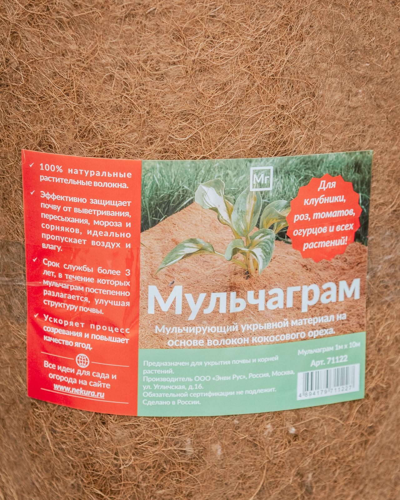 Кокосовое полотно толщиной 7 мм, применяется в качестве мульчирующего материала для защиты почвы от сорняков, вредителей, выветривания и пересыхания. Природные антисептики, содержащиеся в волокнах кокосового ореха, препятствуют развитию патогенных микроорганизмов. Благодаря своему составу и способу производства, создает 100% безопасность для растений от вредителей и сорной растительности. Даже после полного ее высыхания она полностью сохраняет свои защитные свойства. Натуральные кокосовые волокна постепенно разлагаются, улучшая структуру почвы.