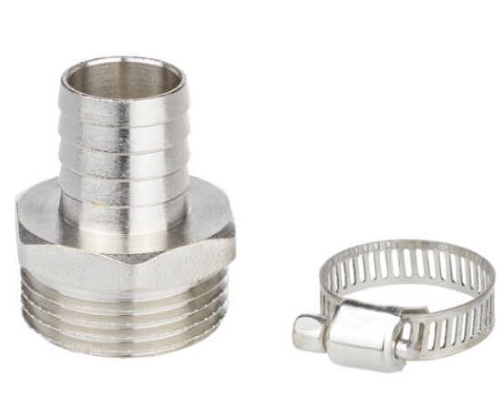 Комплект для подключения садового шланга 3/4" состоит из штуцера и обжимного хомута.