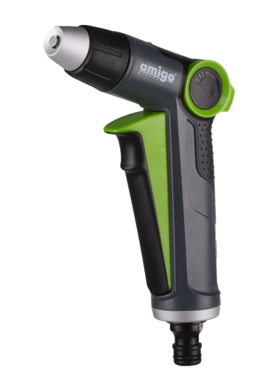 Пистолет-распылитель AMIGO 79830 применяется для полива растений на садовом участке.