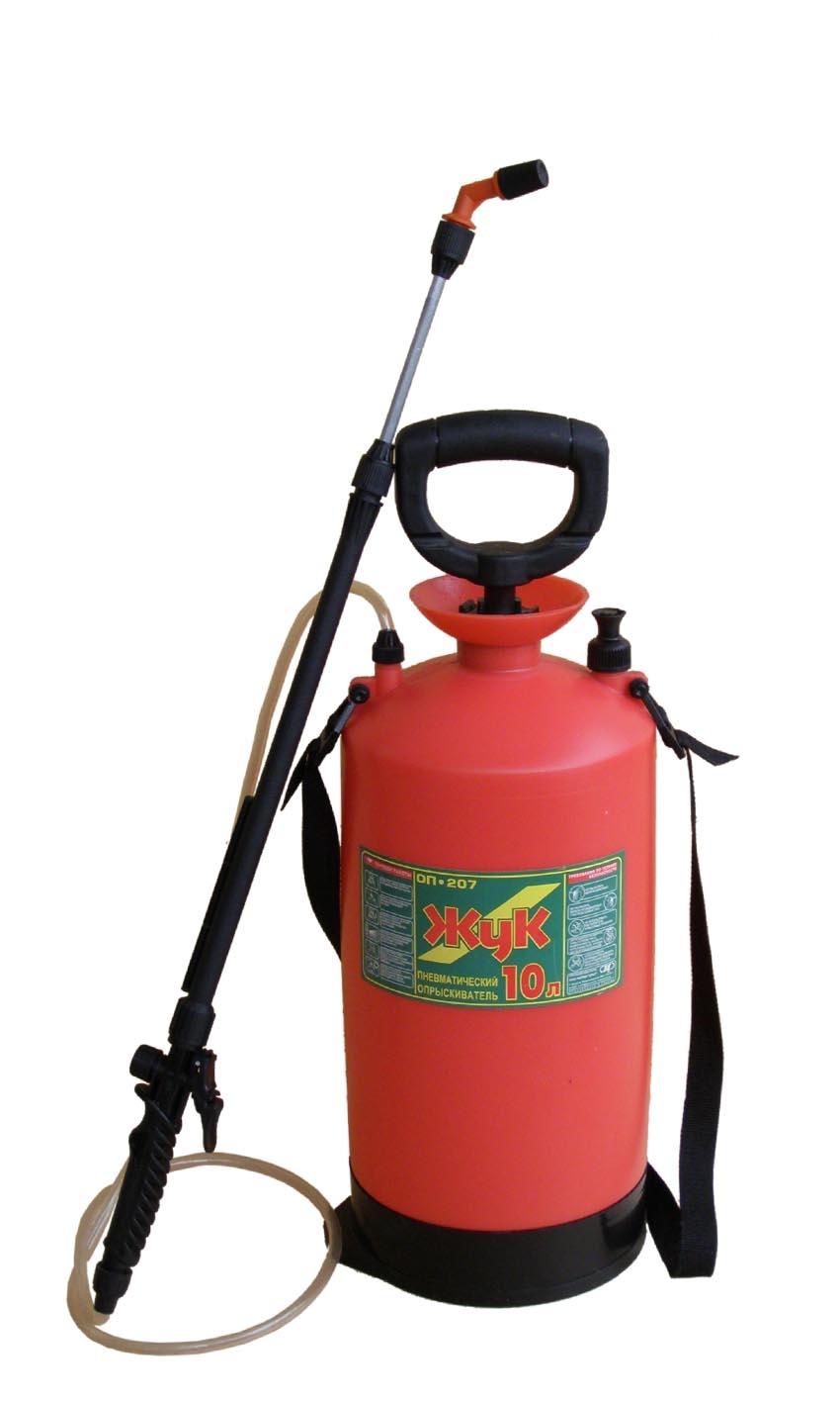 Опрыскиватель ЖУК "ОП-207" применяется для химической защиты растений от вредителей и болезней, а также для уничтожения сорняков. Возможно использование опрыскивателя для обработки поверхностей с использованием моющих средств, чистки стен, стекло и других работ. Цельная горловина создает дополнительную герметичность бака, что гарантирует безопасность эксплуатации и предотвращает возможность вытекания жидкости во время работы. Широкий плечевой ремень, входящий в комплектацию, снимает напряжение с мышц спины во время эксплуатации. Данная модель идеальна для ухода за растениями на небольших садовых участках. Объем бака: 10 л. Объем заливаемой жидкости: 9 л. Длина брандспойта: 60-92 см. Рабочее давление: 0,23 Мпа. Расход рабочей жидкости: 0,6-0,8 л/мин. Диапазон регулировки факела распыла: от 0° до 90°.