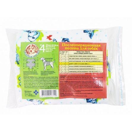 Послеоперационная попона для собак Тошка и Ко №4 является перевязочным средством, в том числе после полостных операций. Попона защищает больные участки тела на животе, груди и боках животного и является неотъемлемой частью реабилитационного периода после оперативного вмешательства. Она защищает рану от проникновения в нее различных микроорганизмов (бактерии, грибки, микробы), которые могут привести к ее воспалению. Попона способствует быстрейшему заживлению ран. С помощью данного приспособления питомец уже очень скоро оправиться после операции и начнет вести привычный образ жизни. На светлых бандажах намного проще определить наличие влажных пятен, которые могут указывать на появление каких-либо осложнений. Также на светлой попоне легком можно увидеть загрязнения, которые станут сигналом к тому, что повязку надо поменять. Попона подойдет для собак 23-35 кг (боксёр, колли, эрдельтерьер, сеттер, некрупная лайка, далматинец) обхват груди 69-80 см.