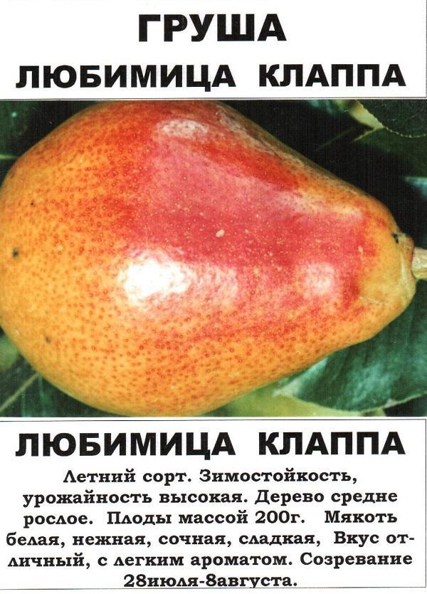 Любимица Клаппа - это высокое дерево с редкой, но широкой кроной в форме пирамиды. Садоводы любят этот сорт за высокую зимостойкость и устойчивость к засухе. Плоды в форме короткой груши, достигают веса в 200 грамм. Кожица светится желтым глянцевым цветом, а на солнечной стороне всегда краснеет румянец. Вы можете купить саженец Любимица Клаппа, и вскоре будете наслаждаться нежными плодами с кисло-сладким вкусом, который просто тает во рту.