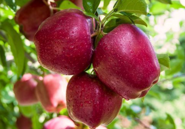 Компактные размеры этой яблони позволяют выращивать ее даже на небольших участках. Высота дерева редко превышает 3 м. Лист овальной формы, среднего размера, кончик подкрученный, края зазубренные. Пластина гладкая, глянцевая, опушки нет ни с лицевой, ни с внутренней стороны. Цвет листвы варьируется от изумрудного до насыщенно-зеленого. Корневая система не слишком углубленная, скорее поверхностная. Плоды достигают в весе 200 г. Форма яблока округлая, может быть немного вытянутой. Мякоть плотная, хрустящая и сочная. Внутренность плода окрашена в розовато-красный оттенок, ее структура волокнистая, что не совсем характерно для этого фрукта. Яблоко столовое, вкус сладкий, с последующим кисловатым послевкусием.