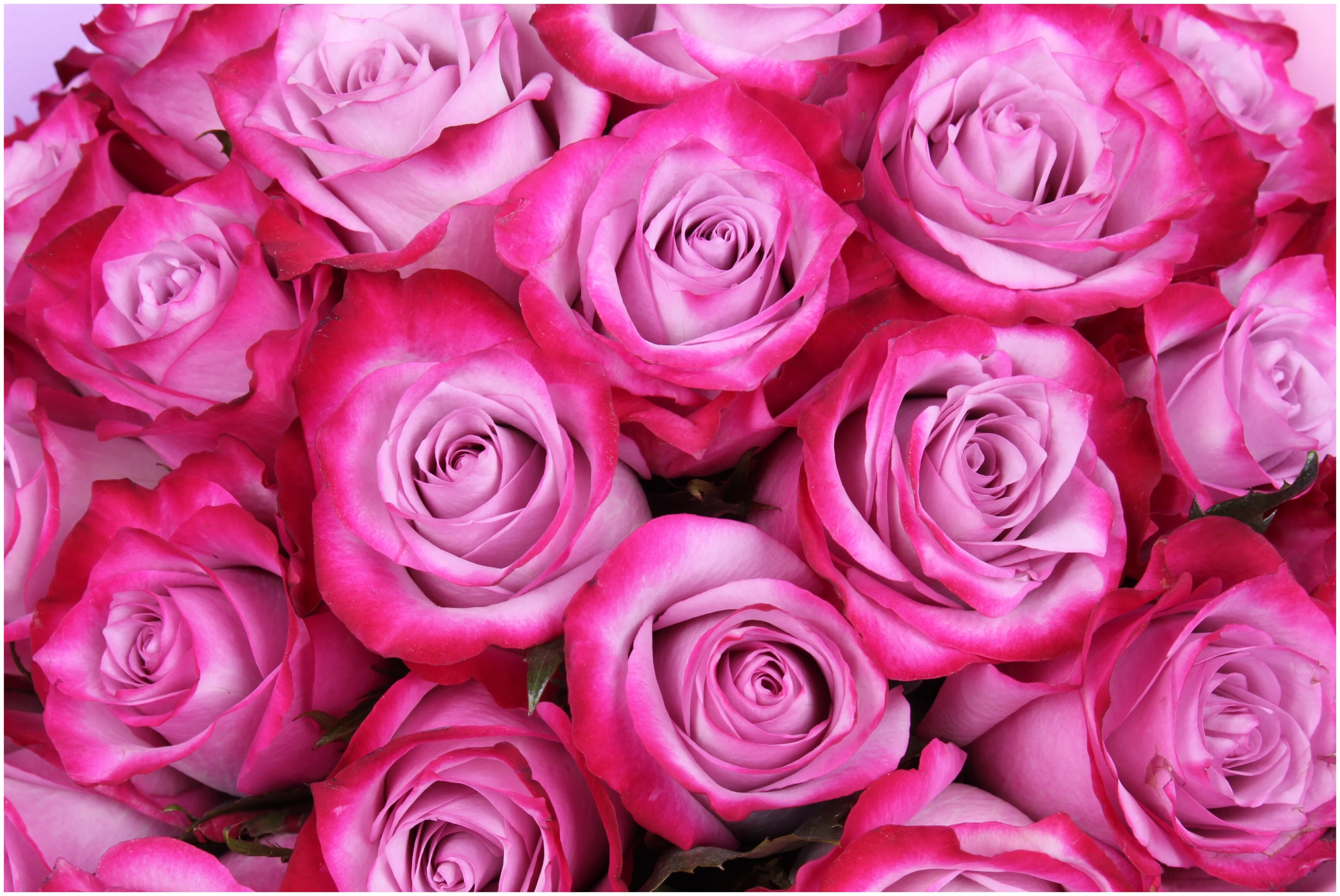 Основания лепестков светлые, лавандовые, бледно-сиреневые, нежно-розовые, фиалковые или почти белые. Ближе к краям, в виде каёмки, проявляются более интенсивные оттенки – лиловых, пурпурных, пунцовых, малиновых или темно-сиреневых тонов.