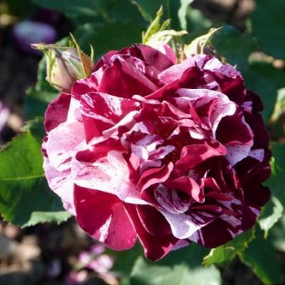 Французская роза представляет собой компактный и маленький кустик, побеги которого едва достигают 70-90 см в высоту. Ширина взрослого розового куста составляет 70-75 см. Характеризуется растение хорошей загущенностью некрупной листвой темно-малахитового цвета с четким блеском, крепкими прямостоячими побегами зелено-бурого окраса, негусто усыпанными острыми шипами, и развитым корневищем стержневого типа. В конце весны или начале лета на удлиненных и прочных цветоносах формируются бутоны, собранные в соцветия. В среднем на одном стебле образуется около 3-5 экземпляров.