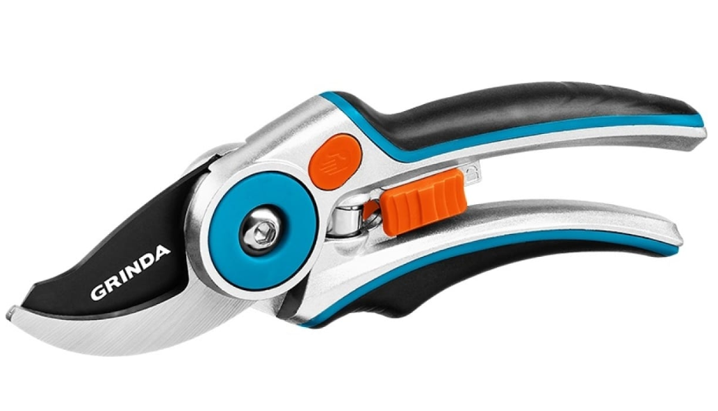 Плоскостной секатор Grinda PRO Line 423429 используется для обрезки веток и стеблей растений.