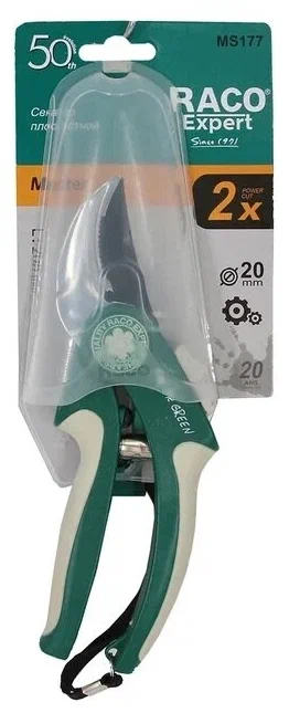 Лезвия изготовлены из качественной стали Ст45 (ГОСТ 1050-88). Верхнее лезвие остро заточено и закалено. Лезвия имеют никелированное покрытие для защиты от коррозии. Эргономичные двухкомпонентные ручки снижают утомляемость при выполнении садовых работ. Удобный фиксатор лезвий.