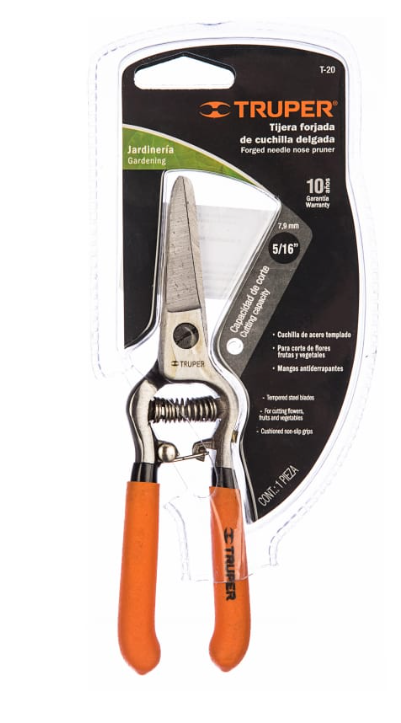 Секатор применяется для резки тонких ветвей кустарников и стеблей растений на садово-огородном участке. Инструмент прост и удобен в применении, его рукоятки имеют специальное покрытие, которое обеспечивает комфорт в работе. Стальные режущие части обладают повышенным рабочим ресурсом. Для более безопасного хранения изделия в неиспользуемом состоянии на его корпусе предусмотрен фиксатор в виде металлической петли и крючка.