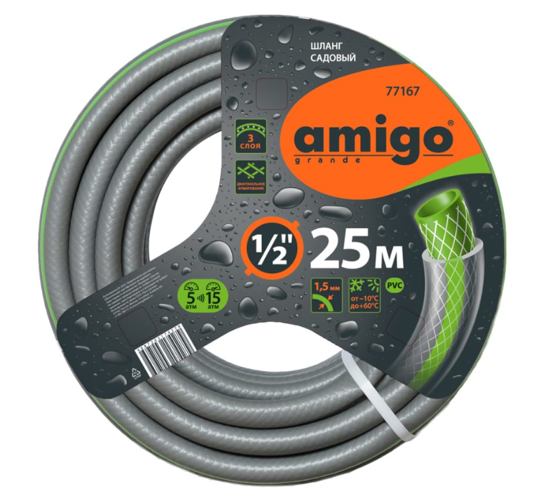 Шланг садовый трехслойный Amigo 12мм 25м 77167 | Купить в интернет гипермаркете «Планета Лета»