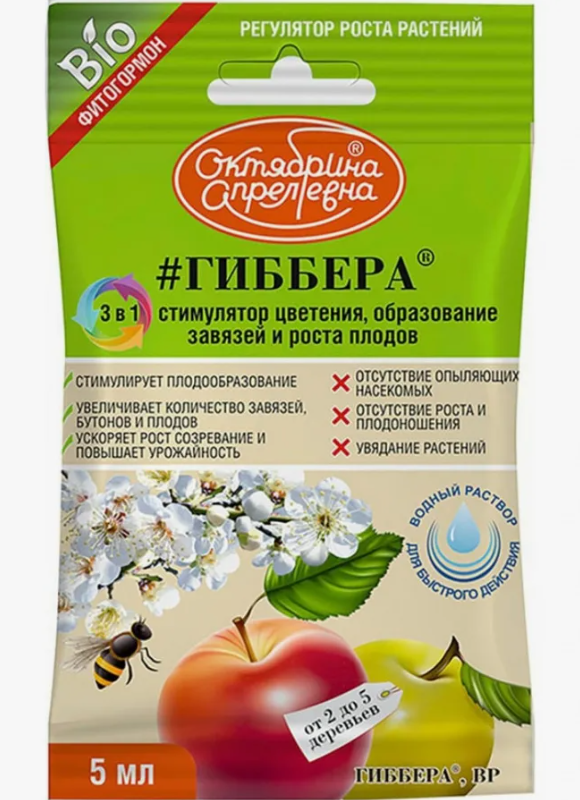 Регулятор роста гормонального типа для стимулирования плодообразования, ускорения роста и созревания плодов яблони в системах интенсивного садоводства, а также овощных культур.