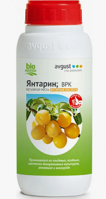 «Янтарин» - природный регулятор роста для плодово-ягодных и цветочно-декоративных культур. Его применение позволяет активизировать жизнедеятельность растений, ускорить цветение и созревание плодов, повысить урожайность. Культуры, обработанные «Янтарином», становятся более устойчивыми к болезням и неблагоприятным условиям – недостатку или избытку воды, заморозкам, перепадам температуры. Нормализуется микрофлора почвы, в тканях накапливается меньше нитратов. Возможно применение «Янтарина» для комнатных растений.