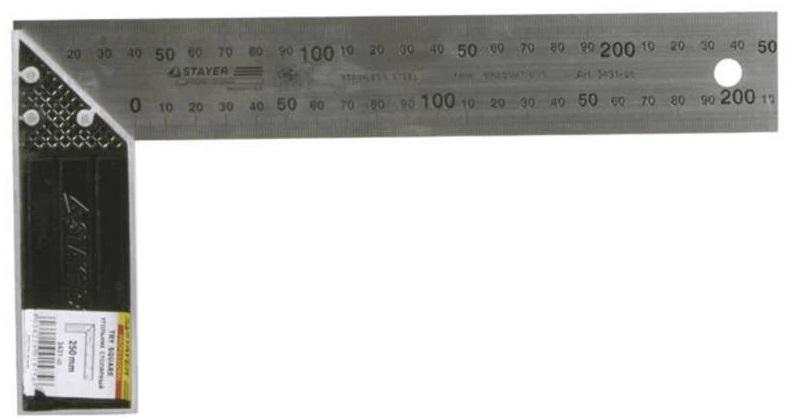 Столярный угольник STAYER PROFI 3431-30_z01 предназначен для строительных, ремонтных, отделочных и других видов работ. Инструмент используется для проверки прямых углов обрабатываемых заготовок и изделий. Выгравированная шкала не сотрется при частом применении угольника.