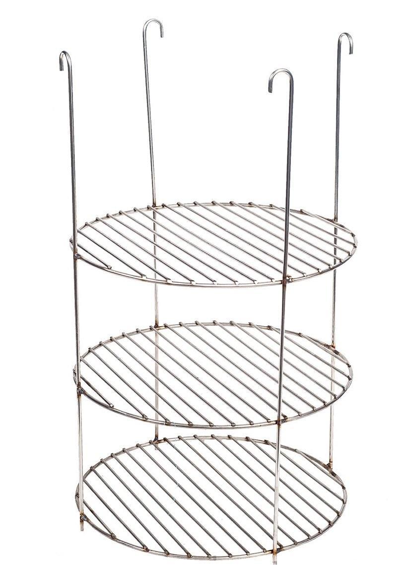 Этажерка трехярусная диаметром 280 мм является универсальным аксессуаром для тандыра и отличной альтернативой шампурам, позволяет готовить несколько разнообразных блюд одновременно. Она подходит для больших тандыров, таких как тандыр "Казачий", "Степной". Готовить с её помощью удобно и легко, а большой диаметр яруса дает возможность быстро все разложить. Высота между ярусами 130мм. Этажерка может служить дополнительным приспособлением для других керамических приспособлений (камней для выпечки, глиняных тарелок), что увеличивает количество приготавливаемых блюд. На ней отлично запекаются овощи, стейки рыбы и мяса, а также тушки птицы. За счет жара от глиняных стенок тандыра, пища получается вкусной, не пригорает, равномерно обжаривается со всех сторон. Используя двух ярусную этажерку можно готовить и запекать блюда в собственном соку, предварительно завернув их в фольгу. Расстояние между ярусами в четырнадцать сантиметров позволяет беспрерывно циркулировать горячему воздуху и равномерно запекать пищу