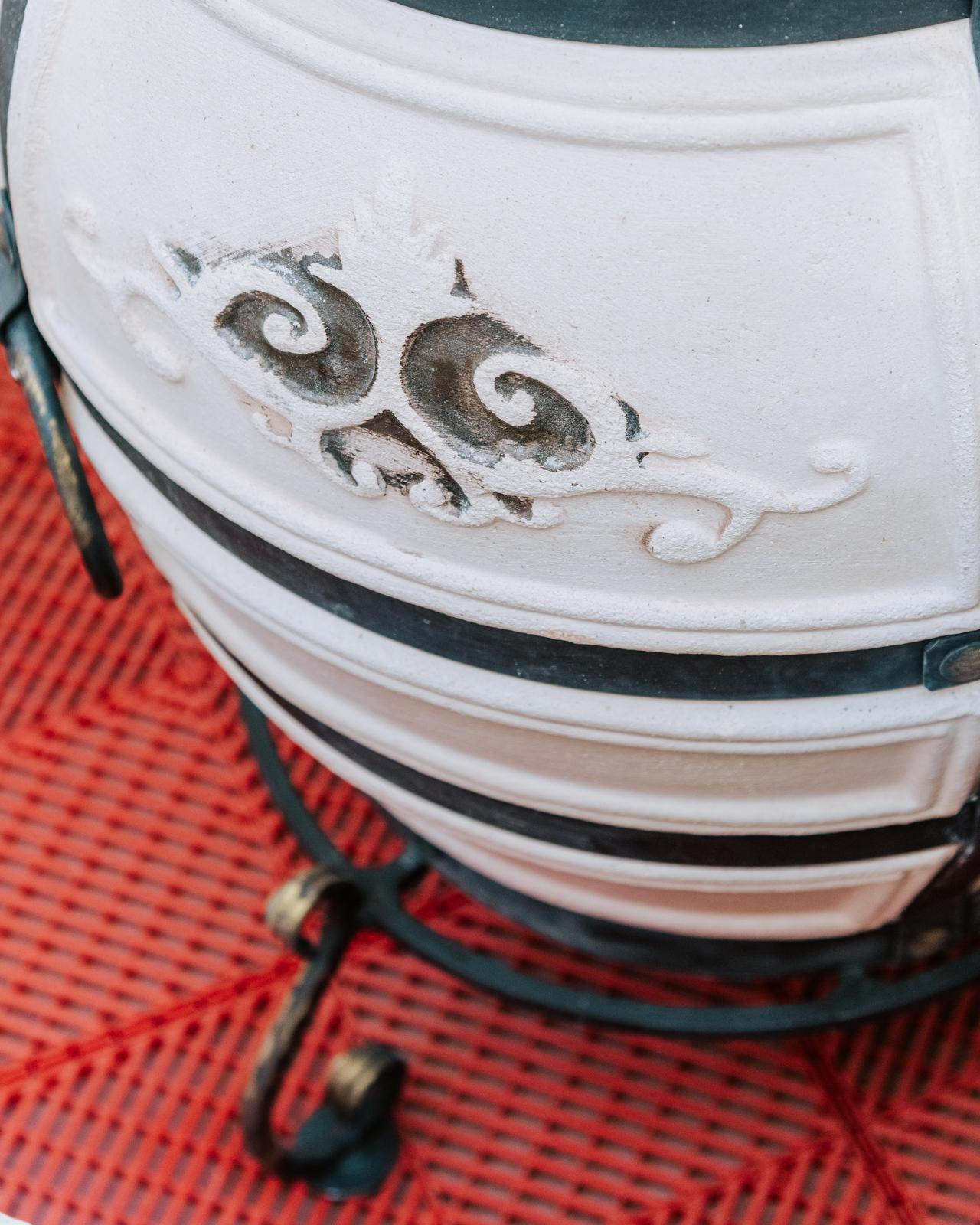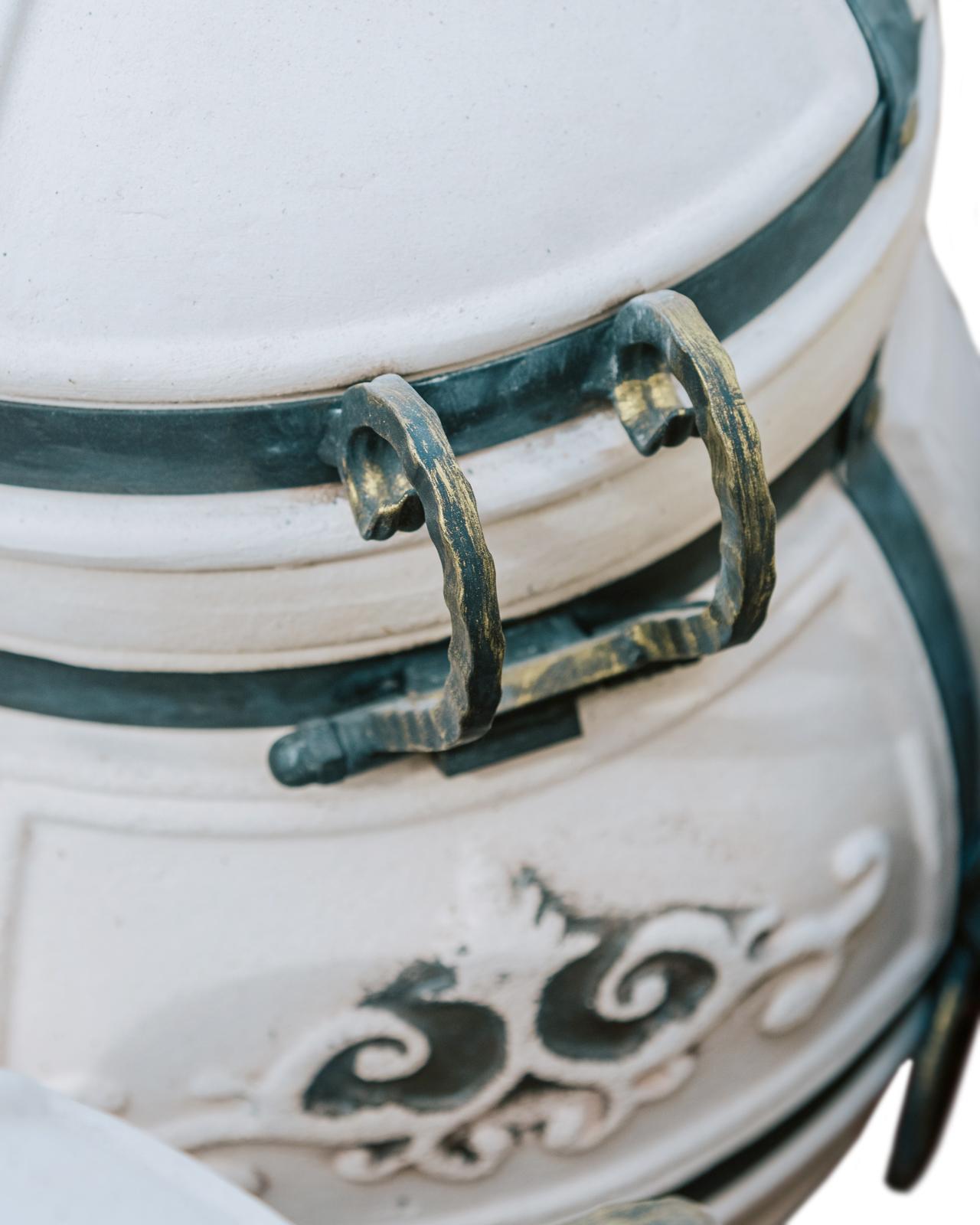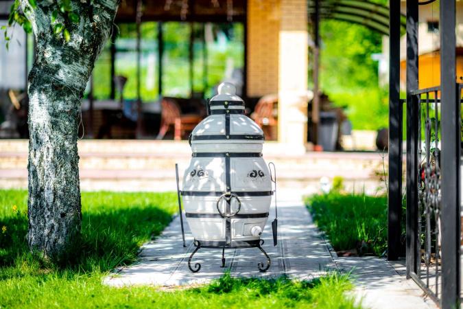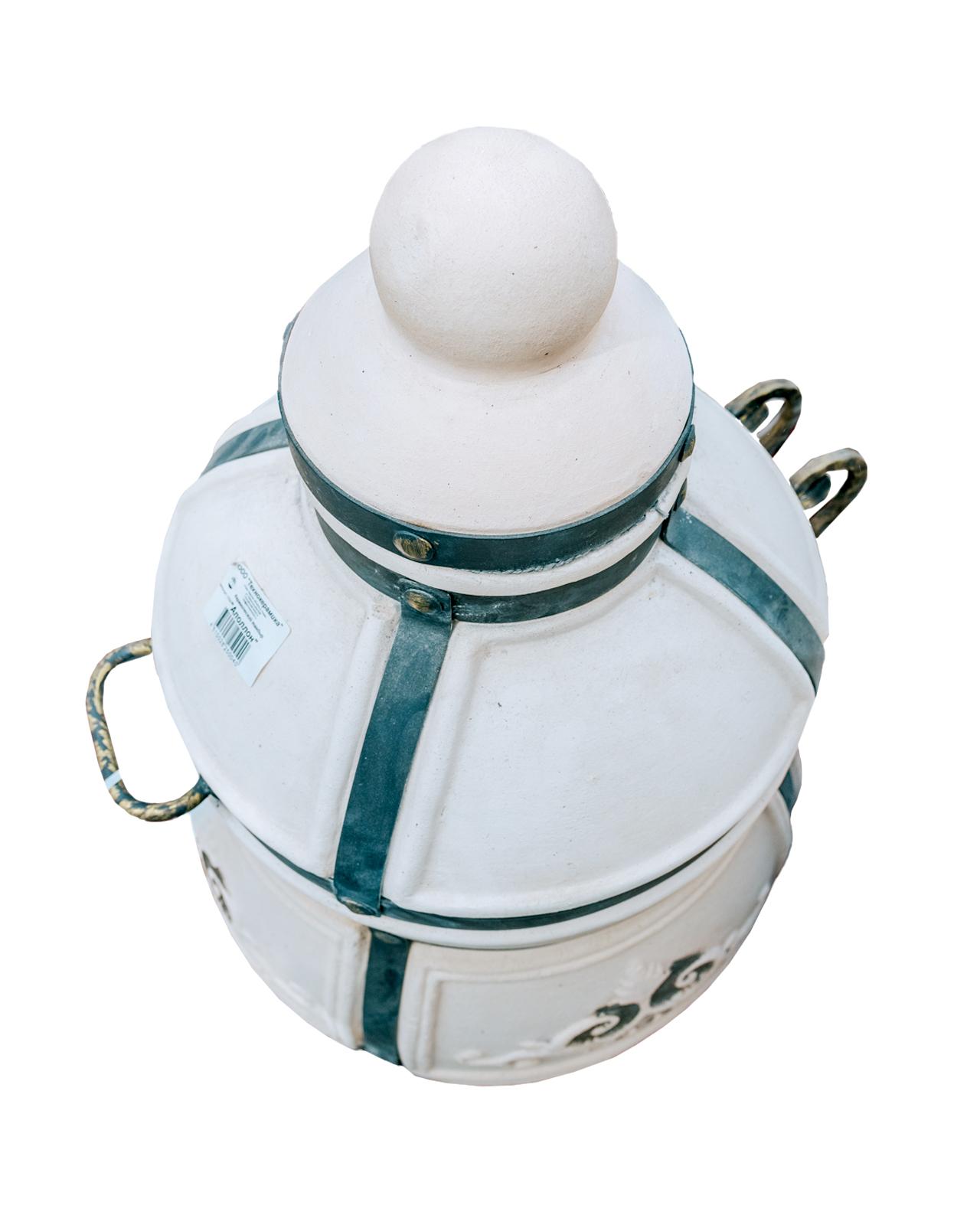 Тандыр "Аполлон" выполнен из шамотной глины. Керамическая печь вмещает до 8 шампуров за раз. За один розжиг тандыра можно приготовить: 3-4 закладки мяса, готовящегося по 20-30 минут; овощи, рыбу, лепешки. Толстые стенки тандыра держат тепло в течении 2-3 часов. Обладает он отличными характеристиками: высокой теплопроводностью, экологичностью, прочность. Имеет срок эксплуатации более 10 лет. За ним легко ухаживать, он очищается обычными бытовыми средствами с водой, выдерживает перепады температур. Высота тандыра в собранном виде: 83 см, без колпака: 71 см, без крышки: 53 см, диаметр: 45 см. Вес тандыра 87кг.