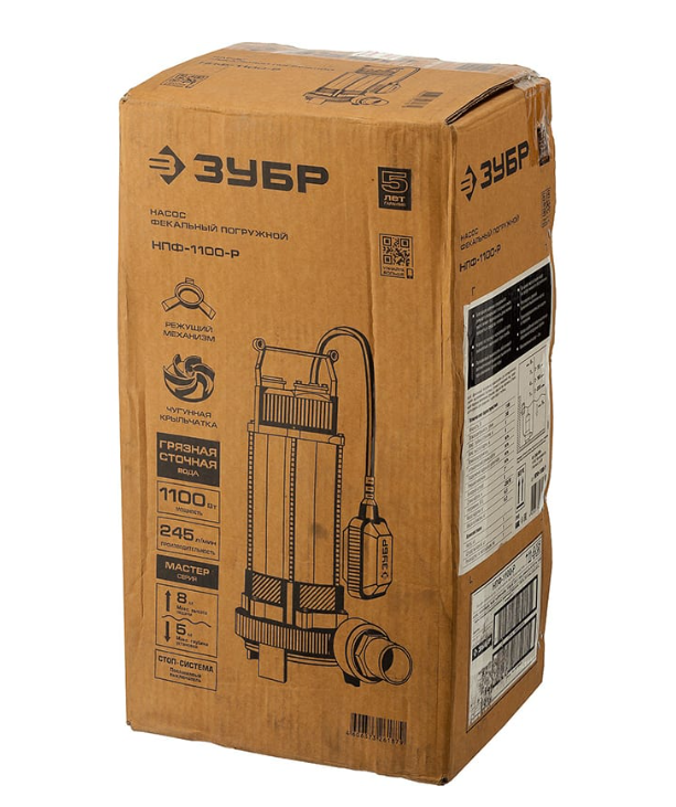 Фекальный погружной насос ЗУБР НПФ-1100-Р подходит для применения на дачном участке для откачки сточных вод. Оснащен поплавковым выключателем, термопредохранителем и клапаном, защищающим от образования воздушных пробок в рабочей полости. Отличается долгим сроком службы и безопасностью. Нож с легкостью измельчает густые включения, попавшие в воду.