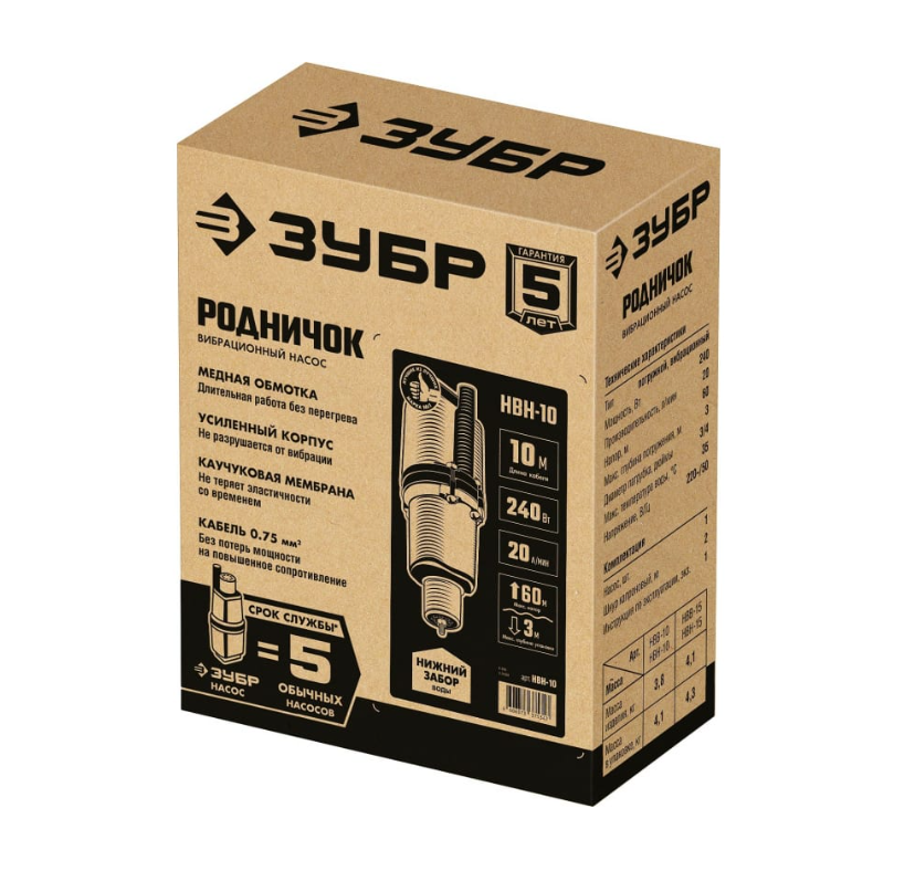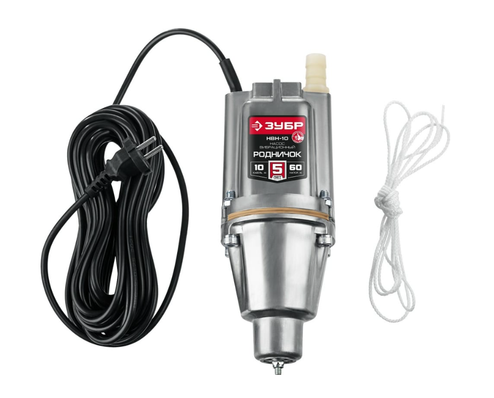 Вибрационный насос с нижним забором воды ЗУБР Родничок-Н кабель 10 м НВН-10 - идеальное устройство для перекачивания жидкостей, благодаря своей производительности, простоте конструкции и неприхотливости в эксплуатации. Может использоваться при осушении емкостей, для забора воды из скважин и колодцев, осушения затопленных мест, откачки воды из подвалов, аэрации и циркуляции воды.